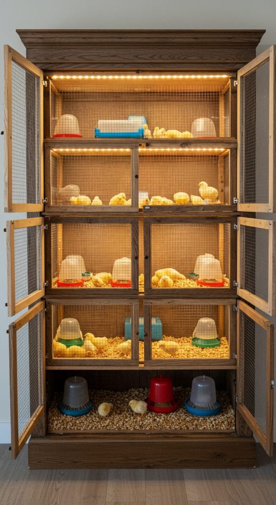 9. Brooder Cabinet (Converted Bookshelf or Armoire)