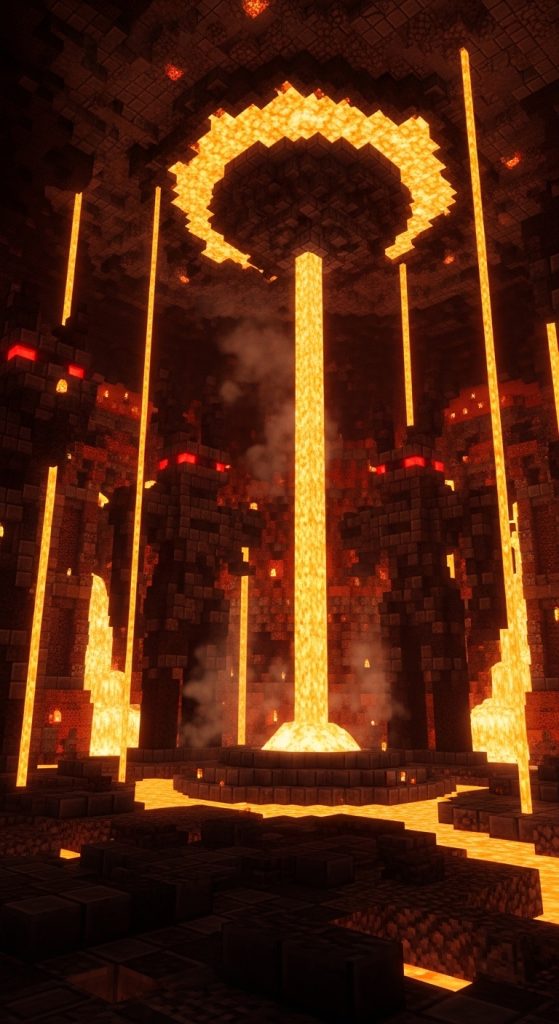 Unique Touch: A floating lava fountain above the altar gives the shrine a mystical, powerful aura, as if the shrine itself harnesses the energy of molten rock.