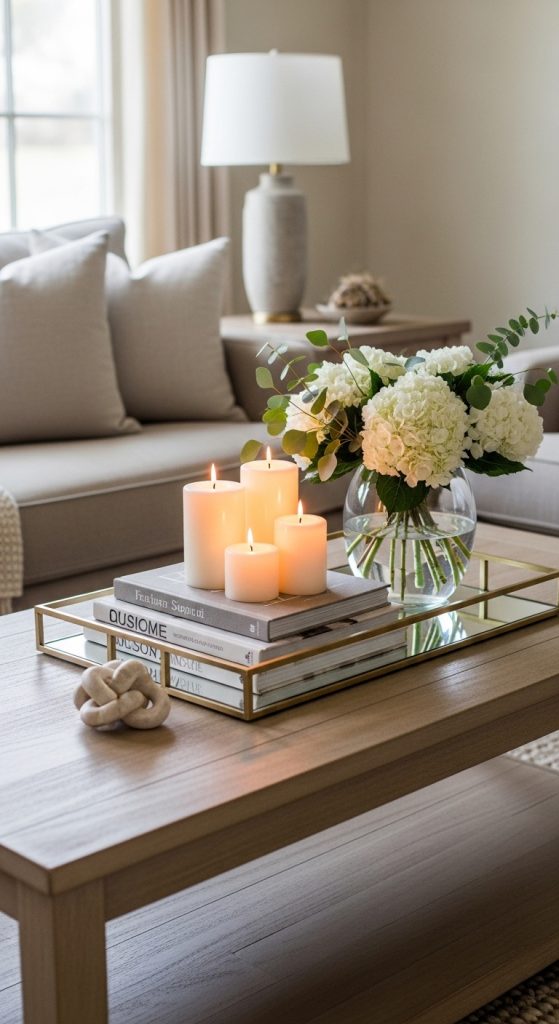 Your coffee table can become a small canvas of personal style. Mix books, candles, fresh flowers, and decorative trays for a balanced yet playful composition. Keep it minimal to avoid clutter, but don’t be afraid to add a quirky or unexpected accent piece.