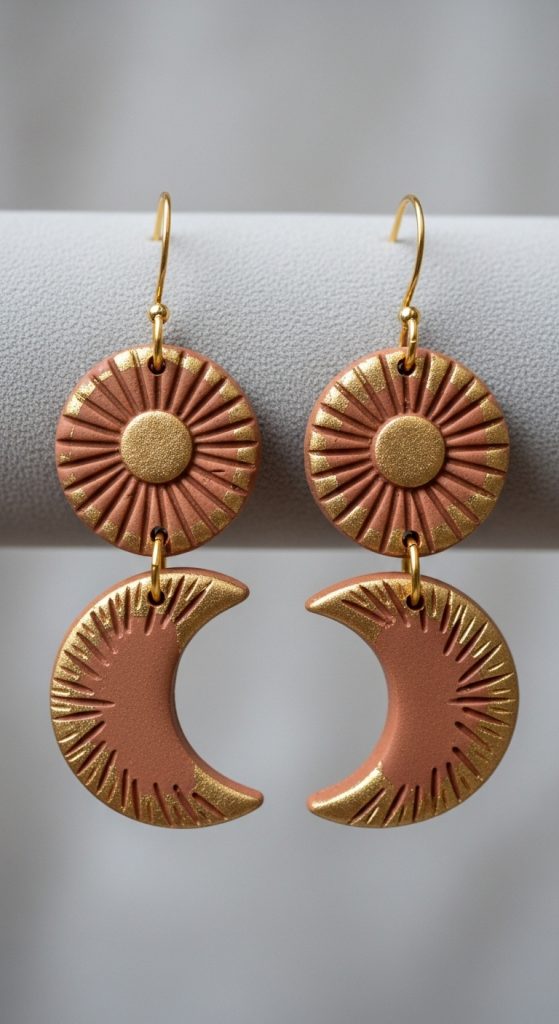 Floral motifs in clay earrings can range from tiny buds to intricate blooms. By using terracotta’s natural warm hues, these floral drops feel organic and elegant.