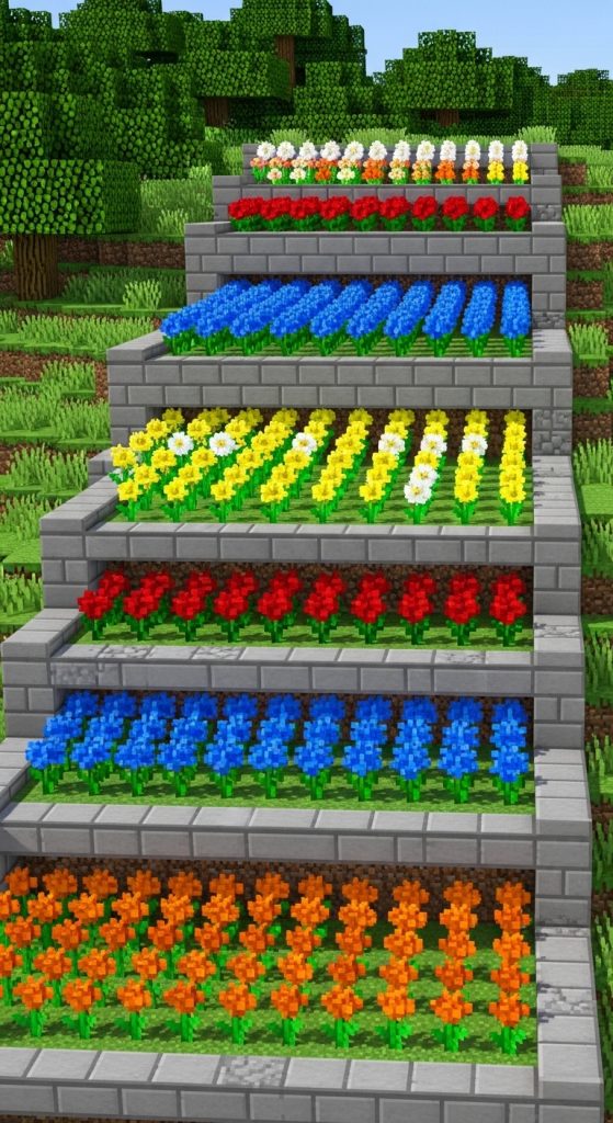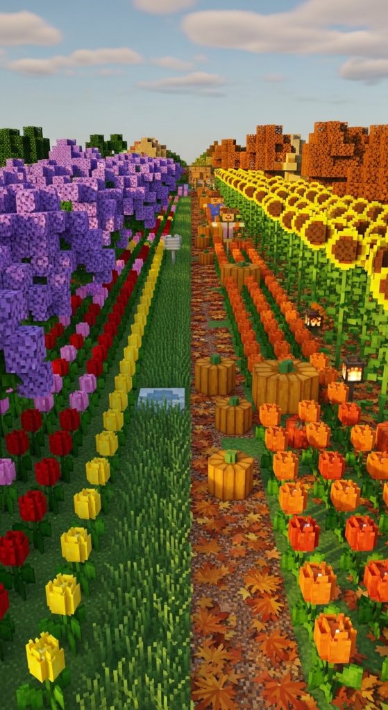 Celebrate the changing seasons with themed flower beds. For example, spring beds can feature tulips, daisies, and lilacs, while autumn beds can mix sunflowers and orange tulips. Seasonal beds add freshness to your garden and encourage players to explore and appreciate the subtle changes in your Minecraft world.