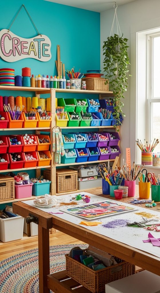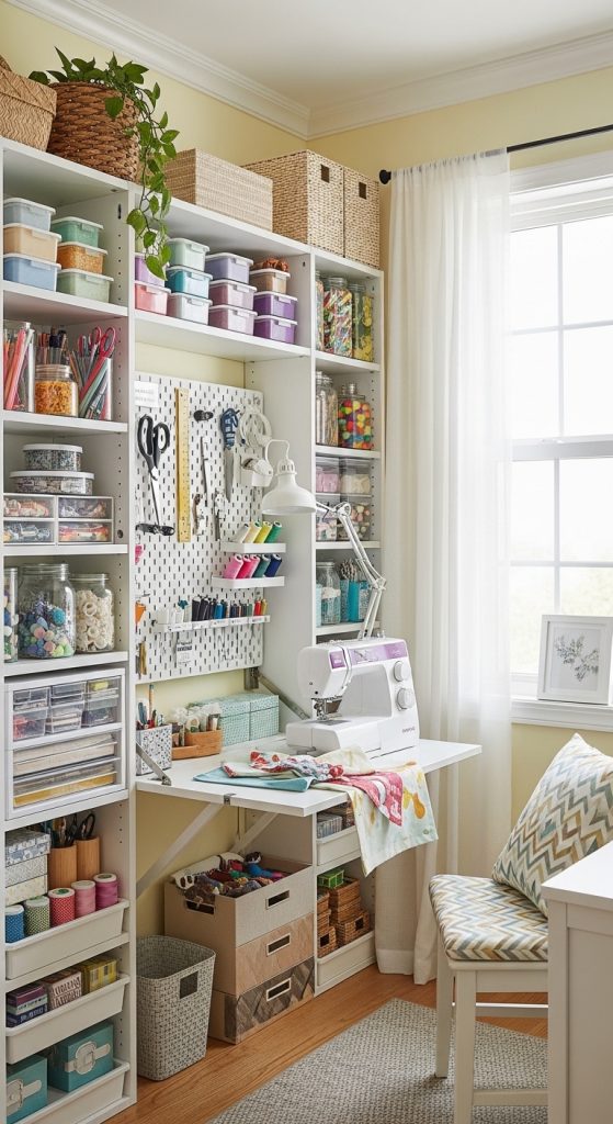 Not everyone has a big room — and that’s okay! Even a small corner can become a stunning craft area with smart organization.