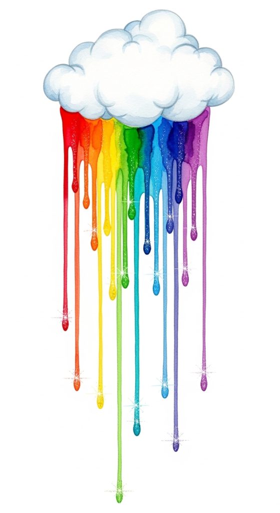 Draw a cloud at the top of the page. Using droppers or brushes, let kids create rainbow raindrops falling down the page. You can even use slightly watered-down paint to achieve a soft watercolor drip effect.