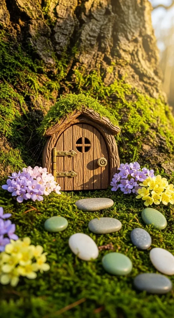A fairy door instantly adds charm to any garden. Dollar Tree offers small wooden plaques and decorative doors that you can paint in pastel colors or metallic shades. Add tiny stepping stones leading to the door, and sprinkle a bit of moss around it for a mystical feel. Placing this near a tree trunk or on a fence gives the illusion that fairies are living right in your garden.