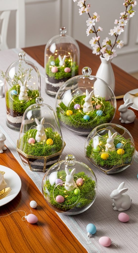 Bring nature and luxury together with Easter-themed terrariums. Kids can arrange moss, tiny pastel eggs, and miniature bunny figures in glass containers. For an added elegant touch, include faux flowers or small twinkle lights inside the terrarium. These delicate decorations add a whimsical yet refined touch to any room, combining hands-on fun with a beautiful result.