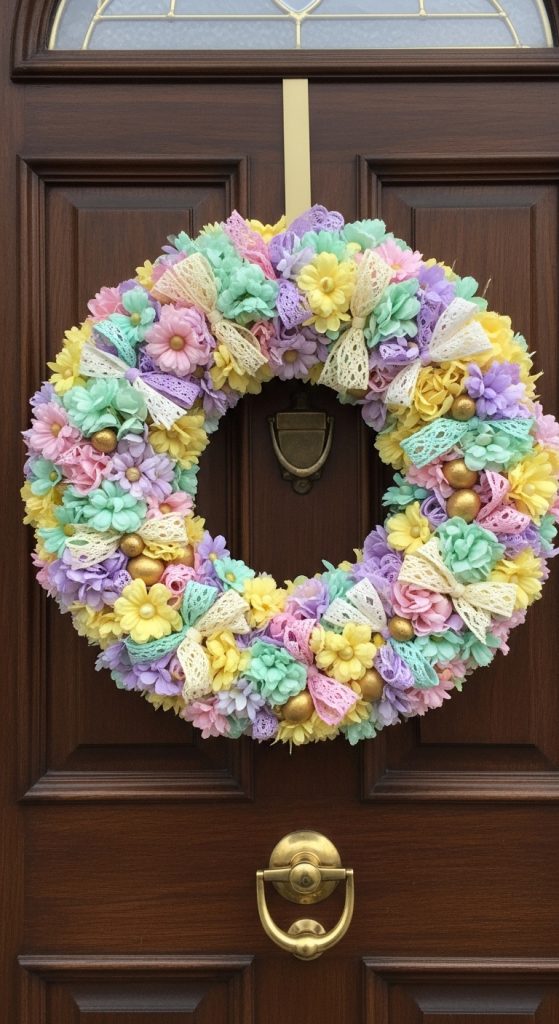 3. Elegant Easter Wreath with Fabric Flowers