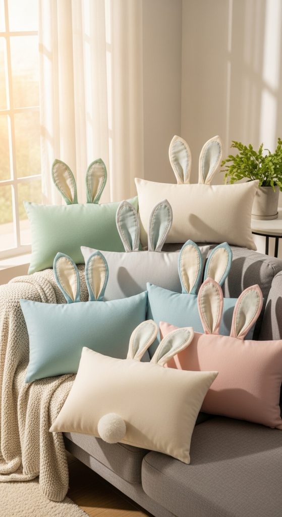 Update your throw pillows for Easter by making simple bunny-themed covers. Use pastel fabric, felt, or embroidery to create bunny silhouettes or ears. These handmade pillow covers can instantly transform your sofa, bed, or armchair into a cozy and festive spot.