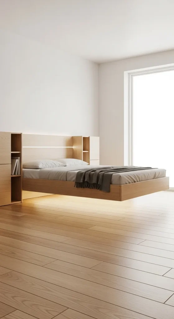 2. Minimalist 3D Bedroom with Floating Elements