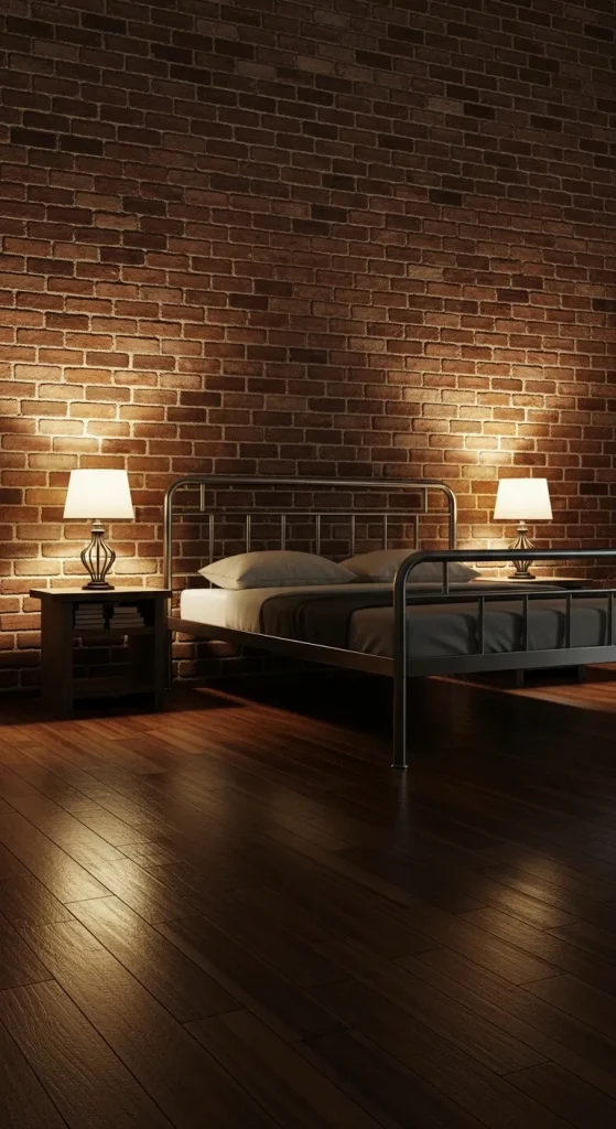 Industrial bedrooms combine raw textures with modern comfort. Exposed brick walls, metal bed frames, and dark wood flooring create a bold aesthetic.