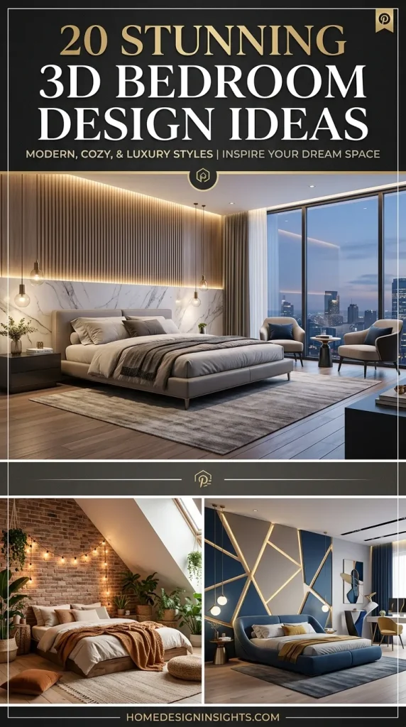 Whether you’re renovating, building a new home, or simply dreaming about a Pinterest-worthy makeover, these 20 breathtaking 3D bedroom design ideas will inspire you to create a space that feels elegant, cozy, and unforgettable.
