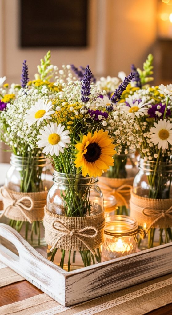 2. Rustic Farmhouse Mason Jar Arrangement