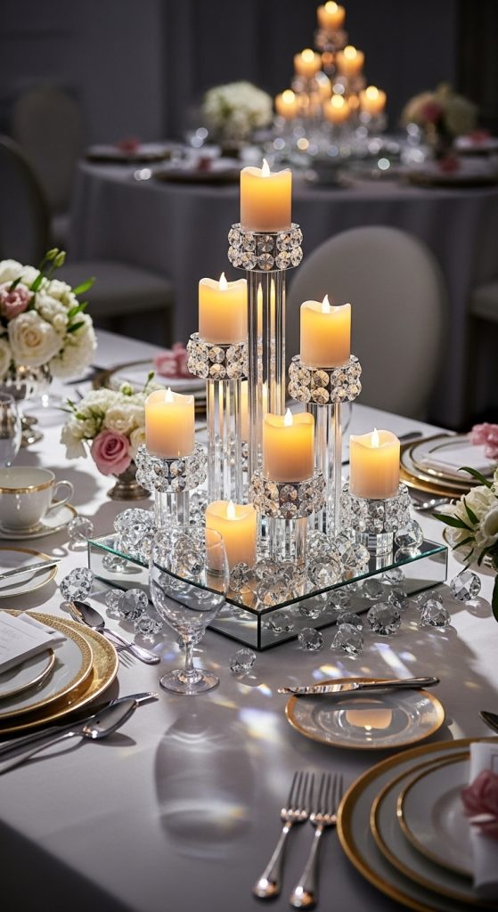 1. Crystal Candle Tower Centerpiece