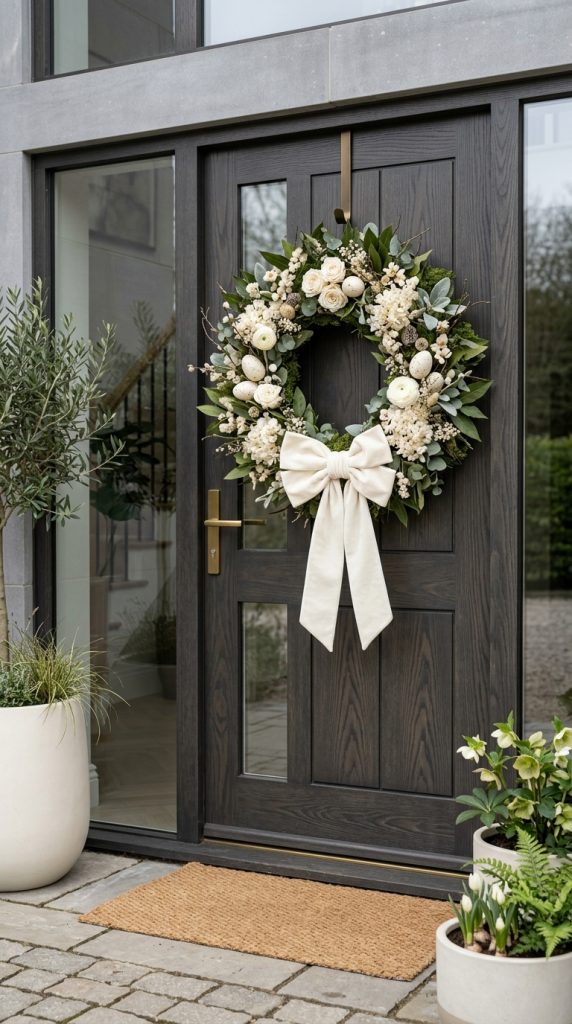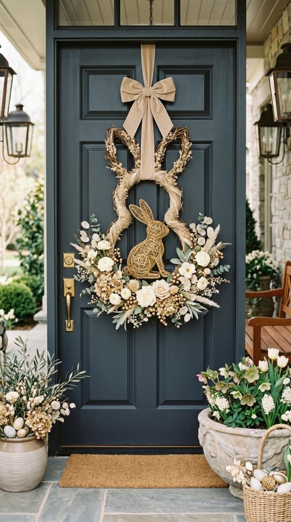 Tie everything together with a wide satin ribbon in champagne or ivory. This wreath looks stunning against dark doors and neutral walls, instantly creating a sophisticated Easter welcome.